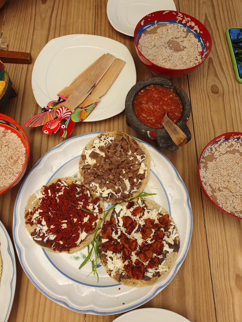 Esta es una opción que se puede agregar en nuestro recorrido: visitaremos a una cocinera Oaxaqueña que prepara de manera muy especial alimentos tradicionales de su pueblo, compartiendo recetas familiares que ella cocina solo para nosotros.